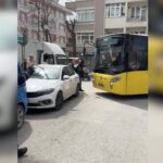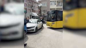 Avcılar’da yola park edilen otomobil İETT otobüslerinin geçişini engelledi